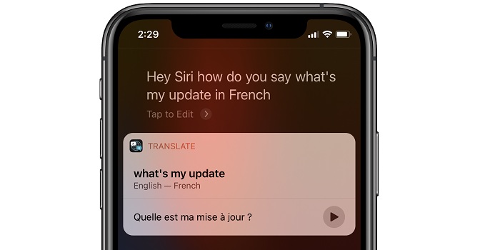 Kilian, thanks for updating us. I’ve asked Siri about it and this is what she replied: https://www.iphonetricks.org/wp-content/uploads/2020/11/siri-whats-my-update-in-french.jpg