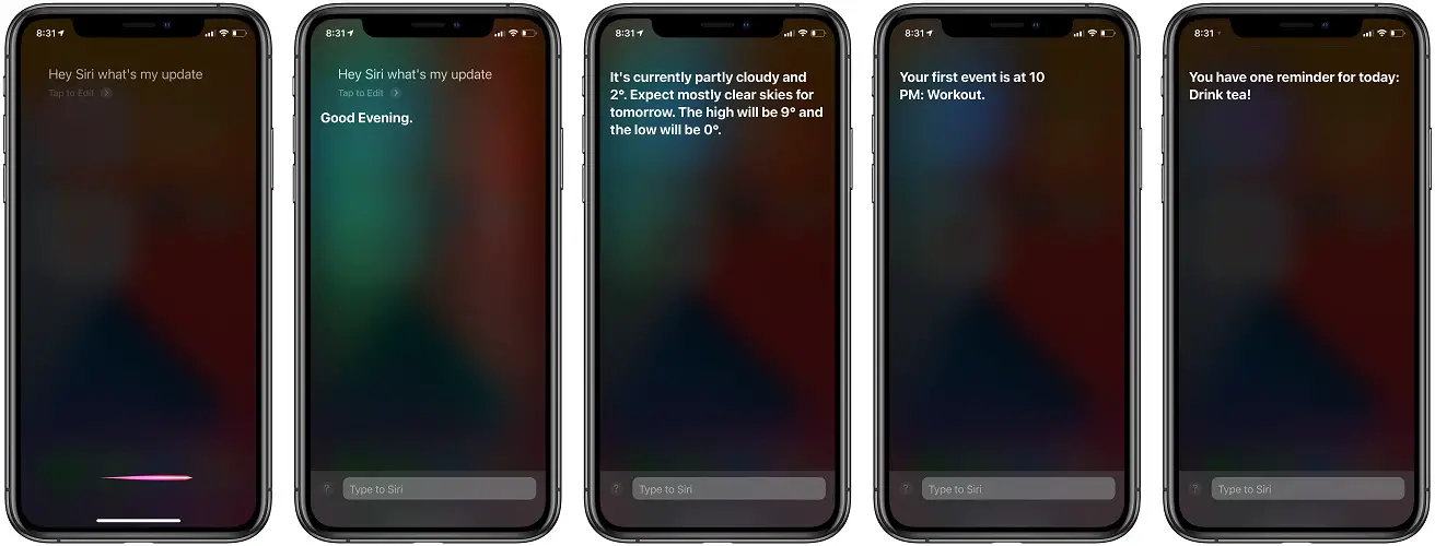 Apple has suggested that the ‘Hey Siri, what’s my update’ feature is HomePod exclusive. However, we noticed that the daily Personal Update is also available on iPhone, iPad and Apple Watch. You can ask Siri about your personal report and get detailed info about today’s weather, what’s on your calendar, travel time, upcoming reminders and even a short news briefing.