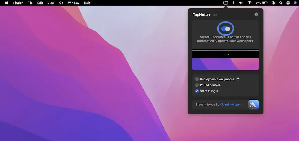 The TopNotch app can also display your macOS Monterey wallpaper with rounded corners.