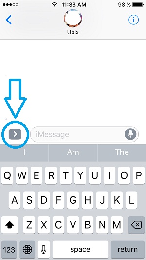 Step 2: Tap on the right-pointing arrow, next to the input message field. This unveils additional iMessage options.
