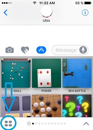 Step 4: The iMessage apps panel unveils. Hit the App Home screen icon available in the bottom-left corner of the screen (a rectangle with 4 bubbles).