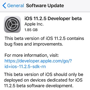 1. If you’re not a Developer and neither plan to become one, you can install the iOS 11.2.5 Beta on your device as long as you install the iOS Configuration Profile from a third party source available here.