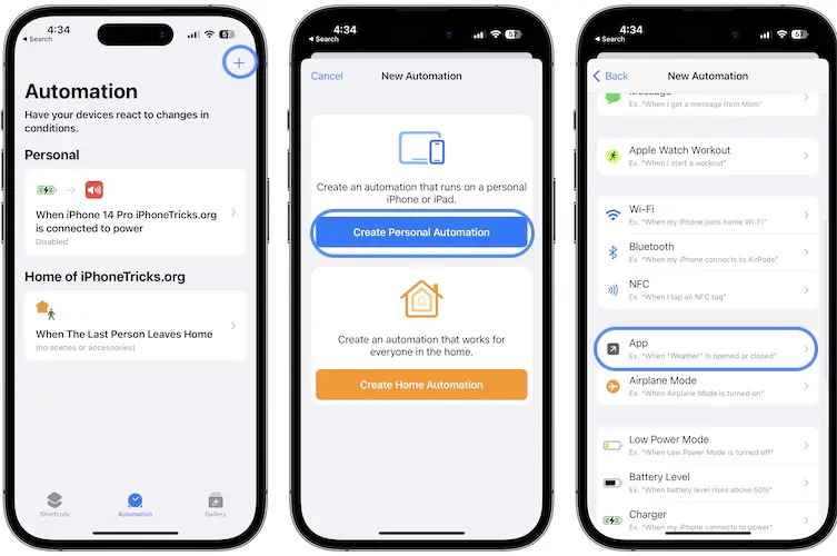 - 2. Tap Automation tab, available at the bottom of the screen.