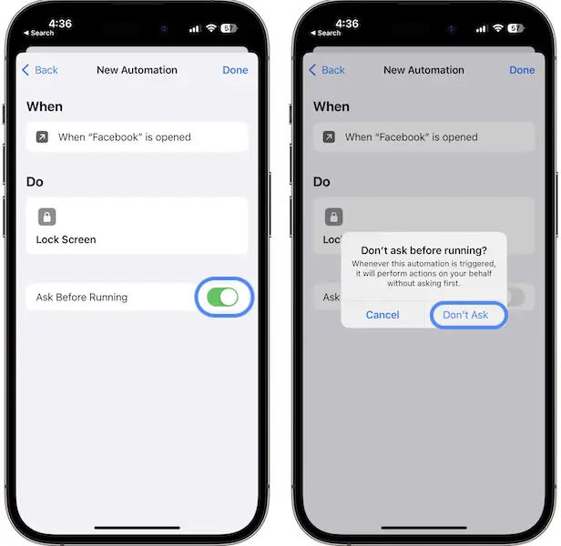 Tip: Create similar automations for any each app that you want to protect with Face ID and passcode.