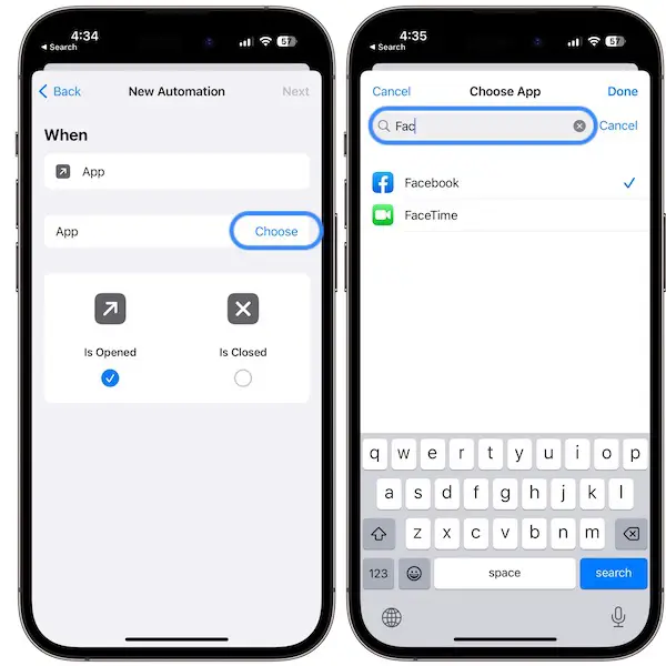 - 6. Tap Choose and select the app that you want to protect with Face ID. Tap Done to confirm.