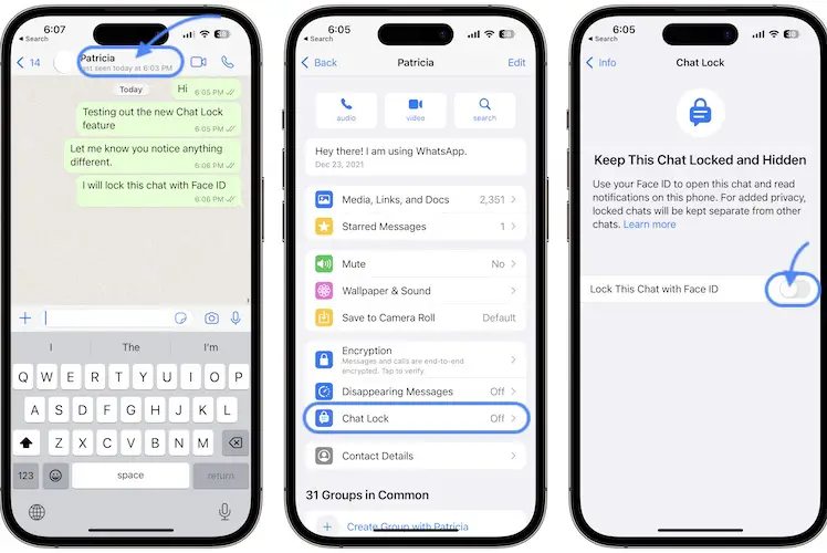 - 1. Open WhatsApp and browse to a conversation that you want to lock behind Face ID, Touch ID or Passcode.