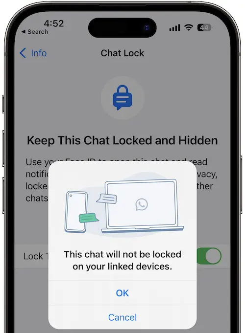 Fact: Note that the chat won’t be locked on your linked devices. You have to turn On Chat Lock for each device in question!