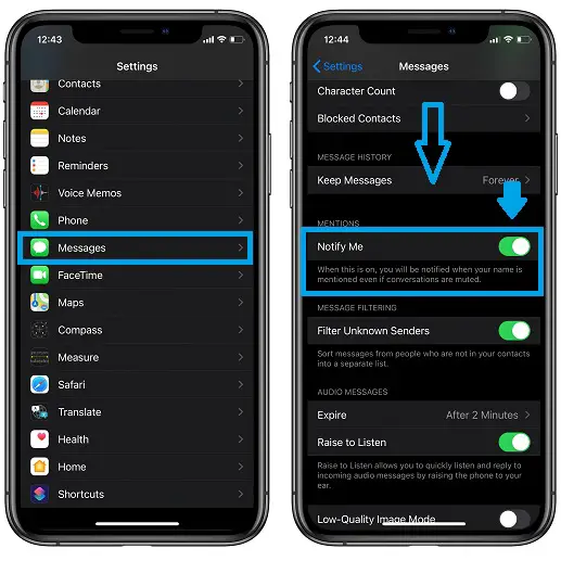 3. Scroll to the Mentions setting and enable the ‘Notify Me’ option.