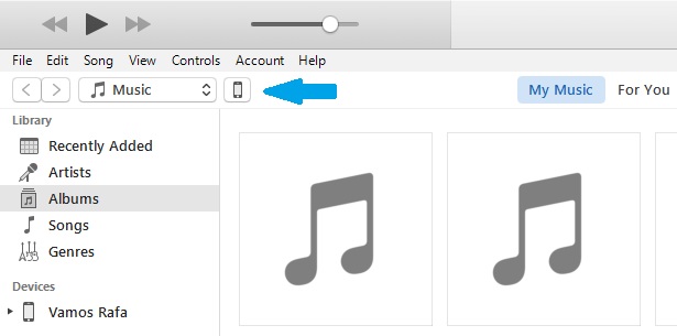 Step 7: Click on the iPhone icon available in the top-left area of the iTunes interface. It will open the iPhone view.