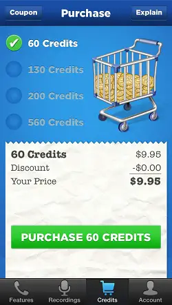 The good news is that your first three joke conversations via this app are free of charge. If you want more fun you have to pay to laugh. Each call, depending on location, is charged with a certain amount of credits (usually between 1-3 credits) per minute. The smallest amount of credits which can be purchased is 60 for the price of $9.95. However, the higher credit package you go for the bigger the discount. Maximum you can opt for the 560 credit package for $79.95. If your call is charged 1 credit\minute you’ll end up paying around $0.14\minute. Do note, that calls can be international and won’t appear on your carrier’s invoice! Have fun!