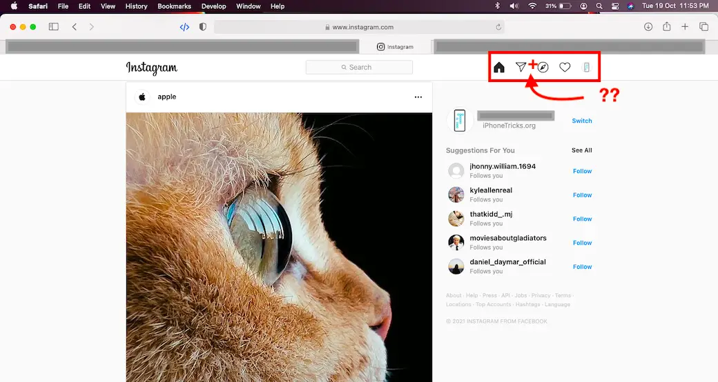 If you don’t get the new post (‘+’) icon, in the top-right corner of the screen, it means that the Instagram posts from desktop feature isn’t available yet in your location.
