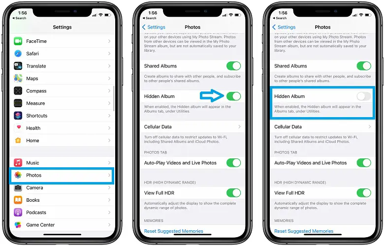 A good example is when you want to add a photo on social media, or edit it with an editing app. The ‘Hidden’ album will show up when browsing through your pictures to pull your image out from the Photos app.