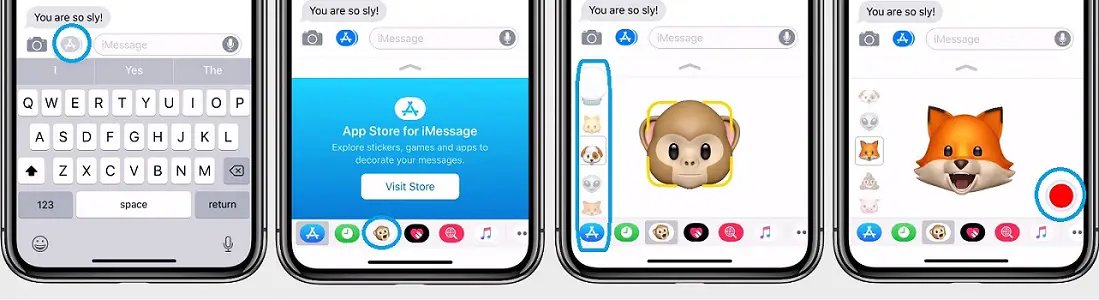 3. Tap the Monkey-face icon which opens up the Animoji app.
