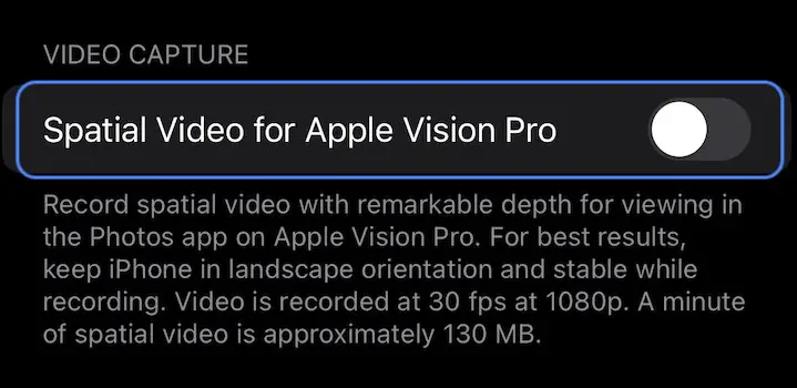 - 3. Turn On Spatial Video For Apple Vision Pro, available under the Video Capture section.