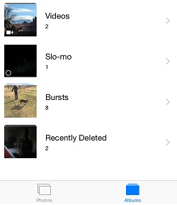 Whenever you open the app and tap the Albums view, your iPhone displays a list with the available picture collections. First up is the Camera Roll, followed by Favorites, Panoramas, Videos, Slo-mo, Time-lapse, Bursts and Recently Deleted.