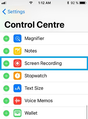 Tip: Drag & drop the Screen Recording tab to change its position in the included controls list!