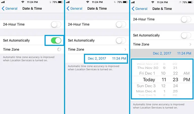 iPhone’s and iPad’s set their time automatically with the help of the Location Service, the Internet connectivity and carrier info. Why would you need to manually tweak the time and date? Well, the December 2 date bug, was temporarily fixable today by setting the time back on your iPhone and iPad to a date prior to December 2, 2017, at least until Apple rushed out iOS 11.2 with a permanent fix!
