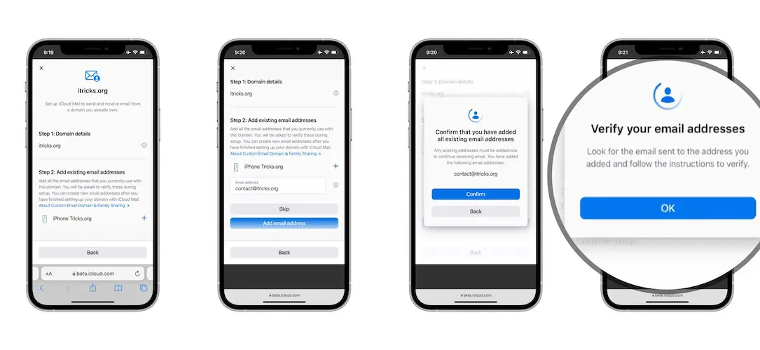 Tip: For more details check Apple’s support document for setting up an existing domain with iCloud email!