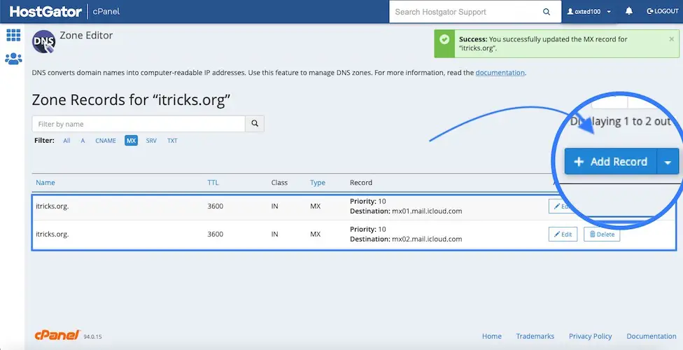 After you’ve verified the email address that you want to use as an alias, it’s time to update your domain registrar’s settings, including MX, TXT and CNAME records.