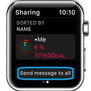 2. Send Message To All is an option that allows you to send the same text to all Friends from your Activity Sharing community. Whenever you’re on a personal best run make sure that all of your Contacts know it. Open Activity on your Apple Watch, swipe for Sharing section and scroll all the way down until you reach the “Send message to all” option. You can use Suggested texts, Dictate or Scribble your thoughts.