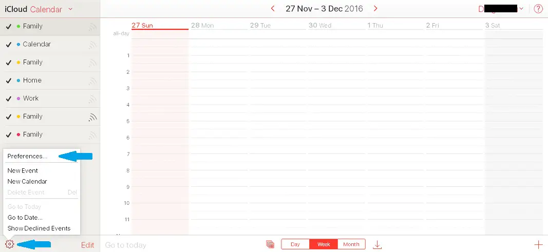 4. On the Calendar view, press the Settings icon, available in the bottom-left corner of the screen (represented by a gear image).