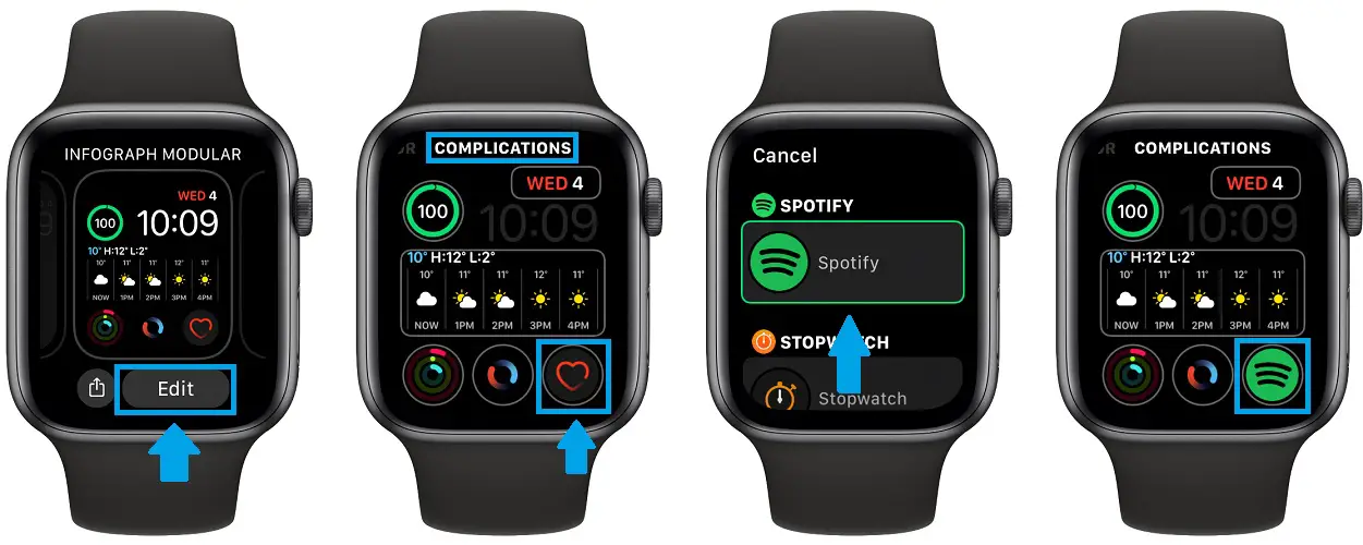 If you plan to use Spotify often on your Apple Watch you can add its complication on the Watch Face and have your favorite music one tap away. How To: