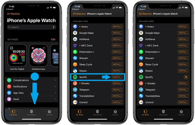 - In the My Watch tab, scroll for the ‘Installed On Apple Watch’ section and check if Spotify appears in the list. If it does, there’s nothing else you have to do.