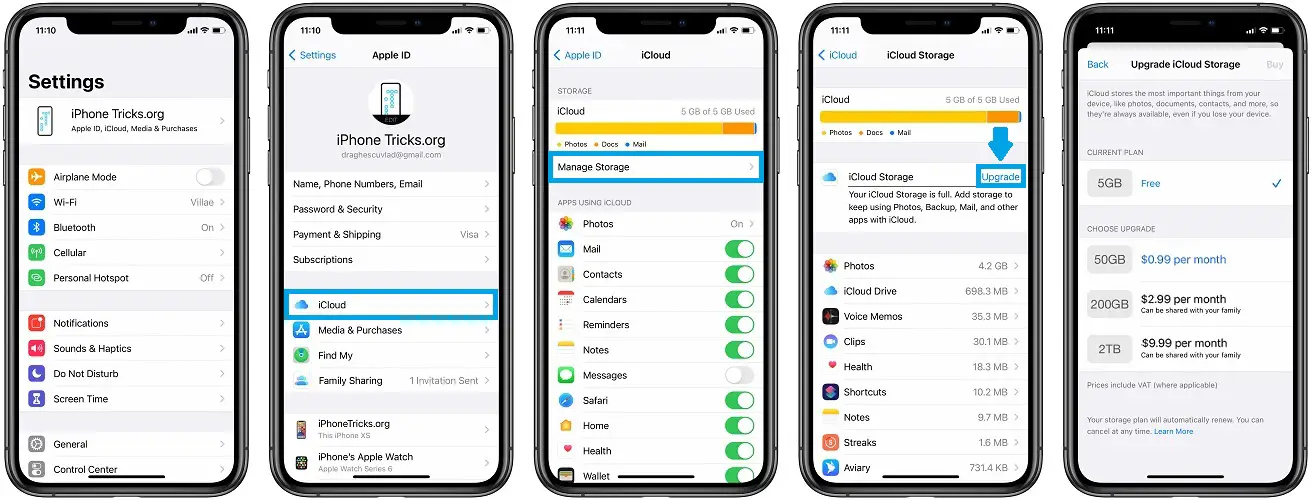 If the 50GB of iCloud storage included in the Individual Plan or the 200GB from the Family plan aren’t enough for you, you can add more by purchasing additional GBs from Settings -> Apple ID -> iCloud -> Manage Storage -> Upgrade.
