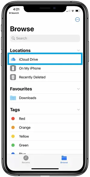 1. Open the Files app and tap on the iCloud Drive option.