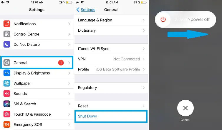Turn Off iPhone From Settings