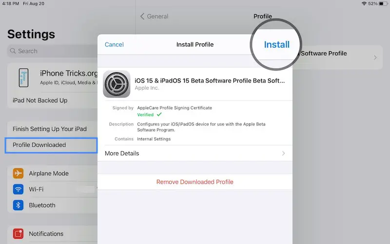 - Provide your iPad’s passcode once again, Agree with Apple’s terms and the iPadOS 15 Beta download starts.