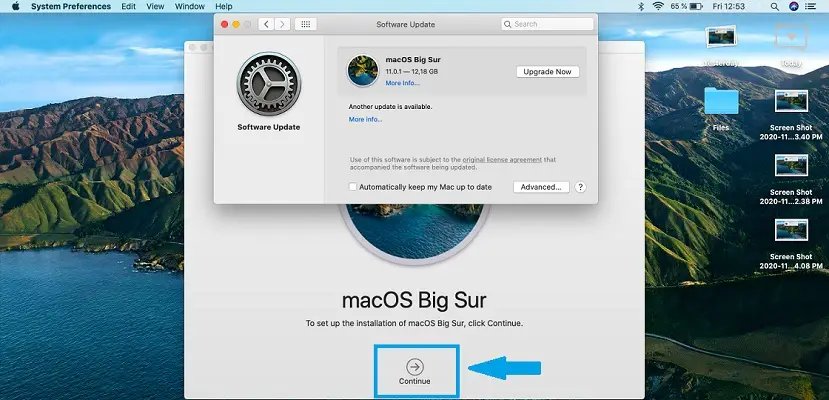 Tip: If you’re prompted with the ‘An error occurred while installing the selected updates’ popup, read here what you can do to fix it! - 4. Click Continue to set up the installation of macOS Big Sur.