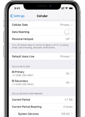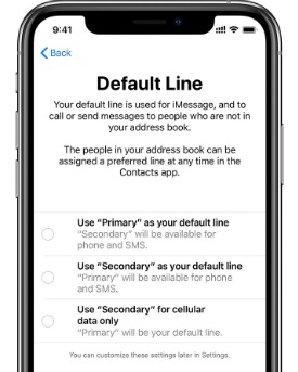 2. Secondary as Default: This is the opposite selection with the secondary line being used as default for voice, SMS, Data, iMessage and FaceTime and the primary SIM will be available just for voice and SMS.