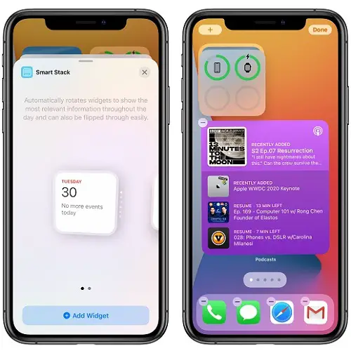 iOS 14 is also able to use time of day and other machine learning data to display the most likely needed widget from the stack.