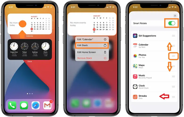 2. Tweak The Order – If you’re not satisfied by the order of the widgets from the Smart Stack you can change it. Simply, drag & drop the label of the widget to the desired location.