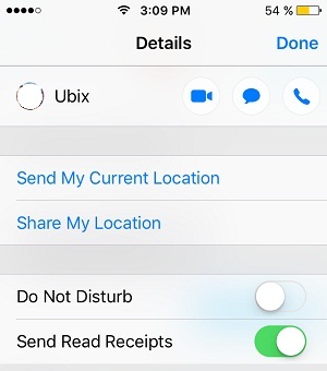 Starting with iOS 10 you can start tweaking iMessage Read privacy and the individual level. This means that you can have the Read Receipts active from the Messages settings and manually tweak those contacts that you want to to know when you have read their texts. To achieve this you have to open the desired message thread and tap the info button available in the top-right corner of the screen. It’s marked by the encircled letter “i”. The conversation Details appear. Tweak the Send Read Receipts knob. Among others you can also activate Do Not Disturb, share your location or send your current location.