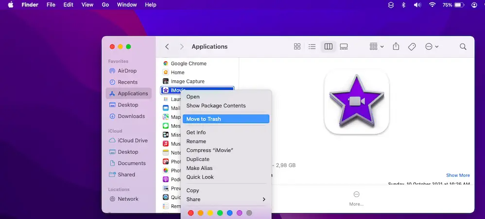 - Open Finder and search for iMovie.