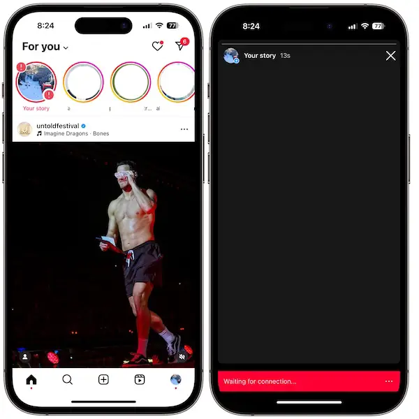 When the Instagram Waiting for connection error showed up while posting a story on my iPhone 14 Pro, I initially quit and re-opened the app but the problem persisted.