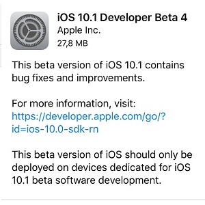 iOS 10.1 Beta 4 Update Log