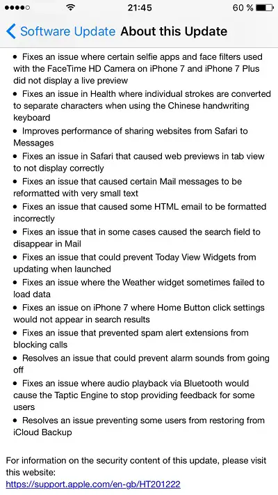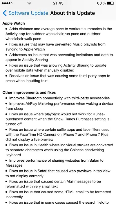 iOS 10.1 does include a wide range of fixes and performance improvements. You can find the full update log listed below. Changes impact mainly the following apps Camera and Photos, Maps, Messages, Apple Watch but there is also the usual list of “Other improvements and fixes”. Do note, that before you proceed with the update we always recommend readers to perform a full iPhone backup before you proceed with the update.