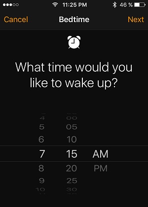 Let your iPhone know at what time you want to wake up. If you don’t have the same schedule each day, input the wake-up time that is most common. For example if you need to wake up during weekdays at 7am and during weekends at 9am, set the wake up time for 7am because you have this wake up target for 5 out of 7 days and it will be easier to track your sleep.