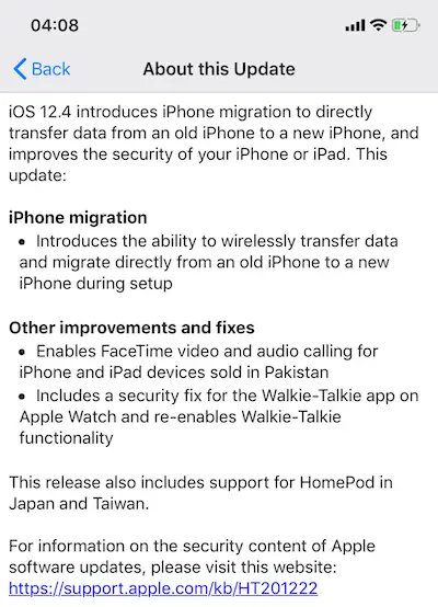 iOS 12.4 Extended Software Update LogBesides the above mentioned new feature, Apple also advertises iOS 12.4 for improving the security of your iPhone or iPad.