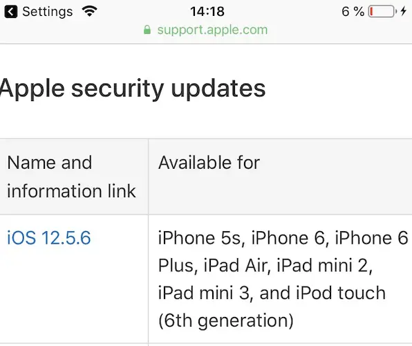 iOS 12.5.6 Security Fix