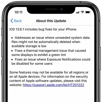 iOS 13.6.1 also fixes patches a bug that could make Exposure Notifications available for certain users.
