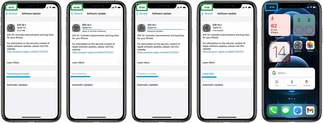 If you’re still running the older iOS generation, updating to iOS 14.1 has the same steps provided above. However be prepared to download an almost 5 GB large update file. This means that the process will take a lot longer (up to 1 hour). The final outcome is strongly impacted by the speed of your Wi-Fi connectivity.