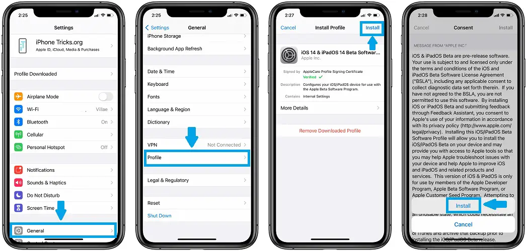 - Install iOS 14 Beta Profile by signing-up or login-in to the Apple Beta Software Program website.