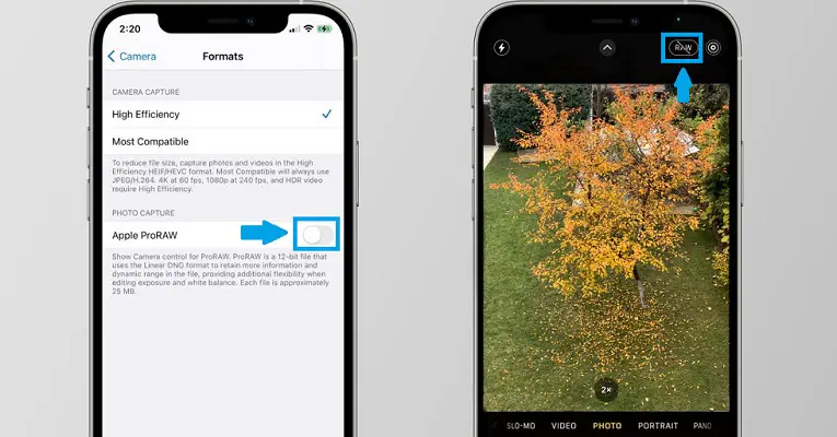 Tip: to enable ProRAW, open the Settings app and scroll for Camera. Tap on Formats and enable the Apple ProRAW option.