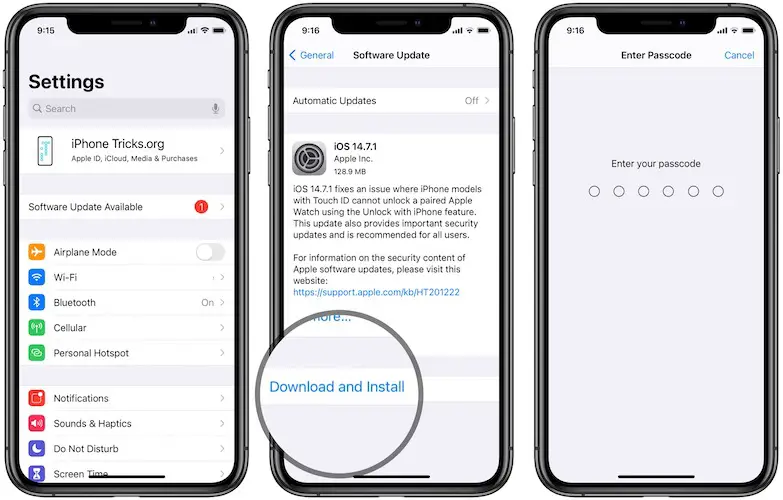 - All that you have to do is tap on Download and Install, provide your Passcode and agree with Apple’s terms.