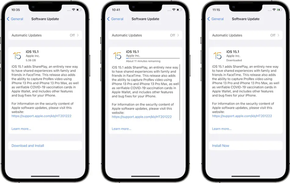 iPhone13 pro max 256 gb. Update from iOS 15.0.2 to 15.1.