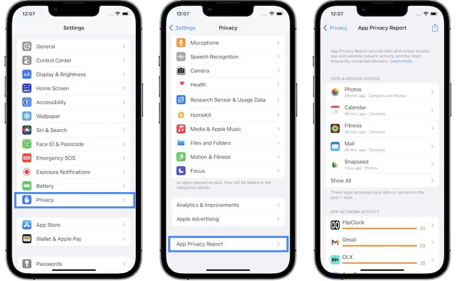 This new privacy feature has been presented during WWDC21, but was yet to premiere in the initial iOS 15 versions. In iOS 15.2 Record App Activity becomes App Privacy Report!When enabled it shows users how often apps have accessed sensitive info as location, microphone, camera, photos and contacts over the past seven days!